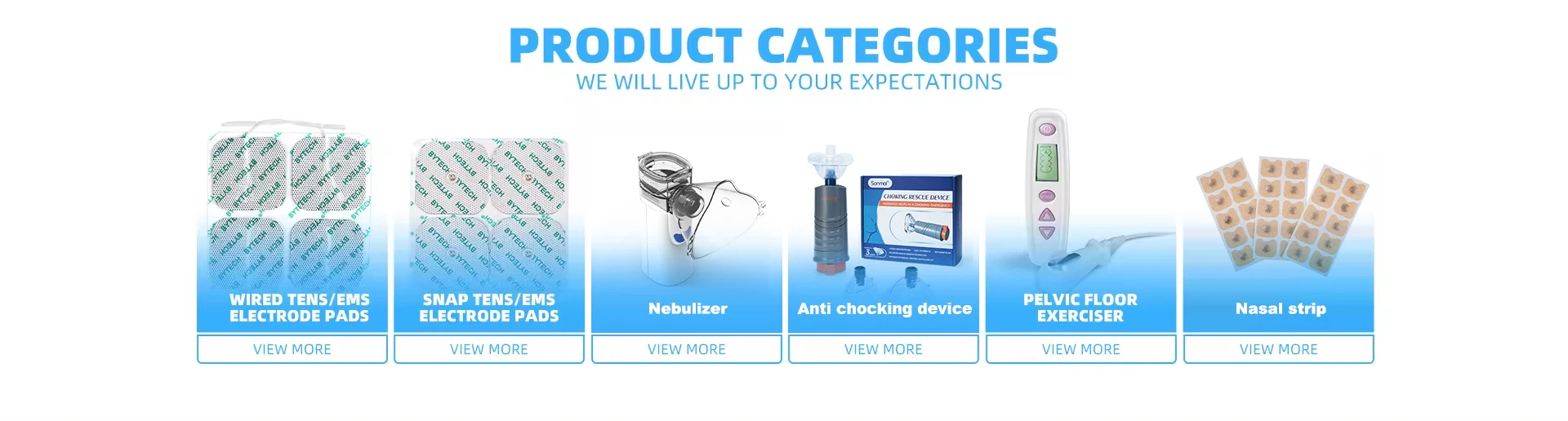 Principaux produits : Électrode Tens et machine Tens, ruban de kinésiologie, entraîneur de muscles du plancher pelvien, nébuliseur à mailles, dispositif anti-étouffement